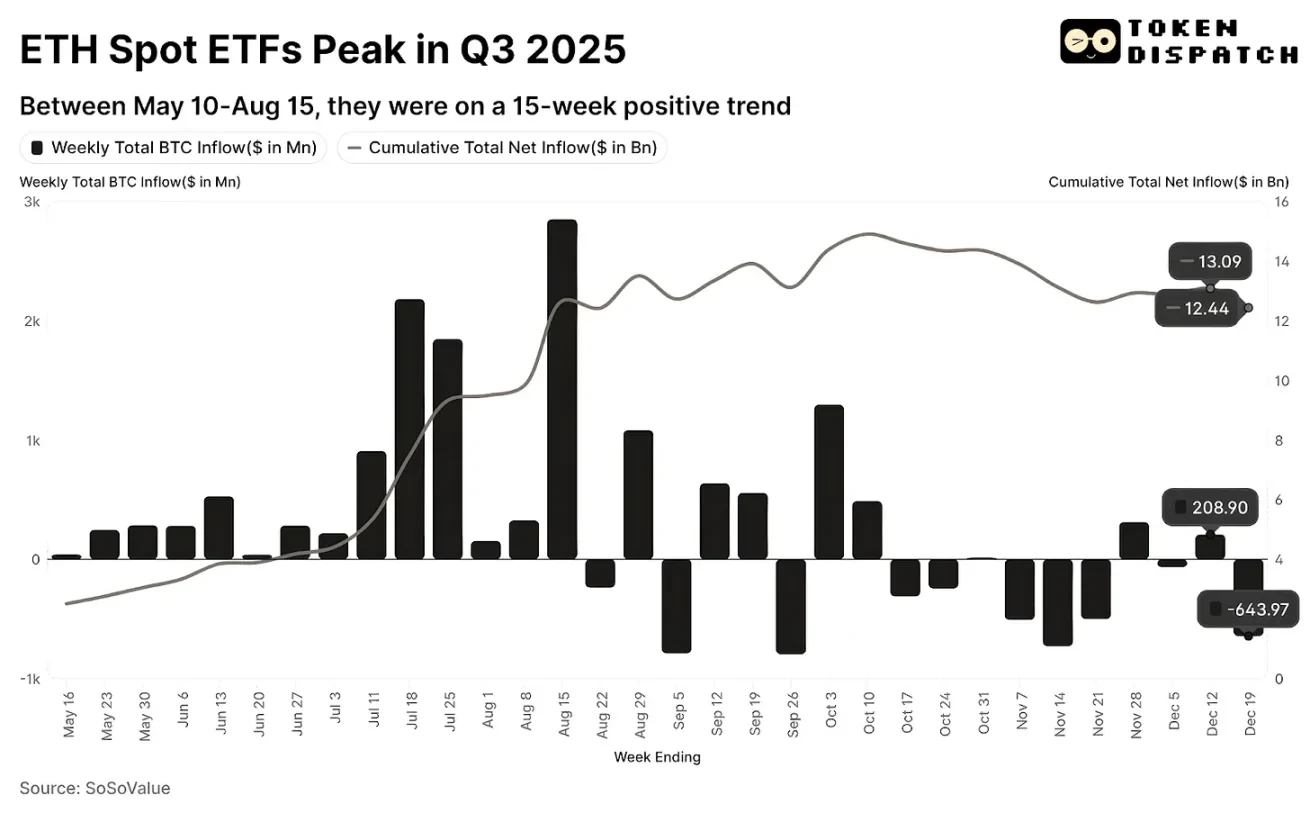 2025 年,以太坊成功跻身基金发行机构的投资组合与上市公司的资产负债表,并凭借机构资金的持续流入,始终占据着市场关注度。