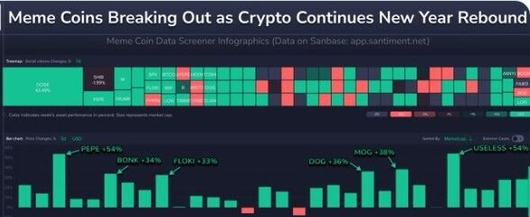 出乎许多人意料的是,新年伊始点燃加密行情的并非比特币或以太坊,而是 Meme 币,在经过一段平静的假期和低迷的市场活动后,Meme 币正在强势回归。