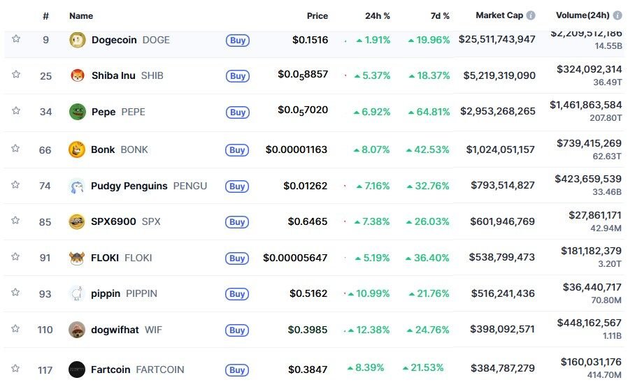 从数据层面来看,这次 Meme 币上涨并非单一代币的“妖币行情”,而是广泛参与的板块性回暖。与此同时,社交媒体讨论热度和链上交易量同步放大,表明注意力与流动性正在回流,而非单纯的价格拉升。