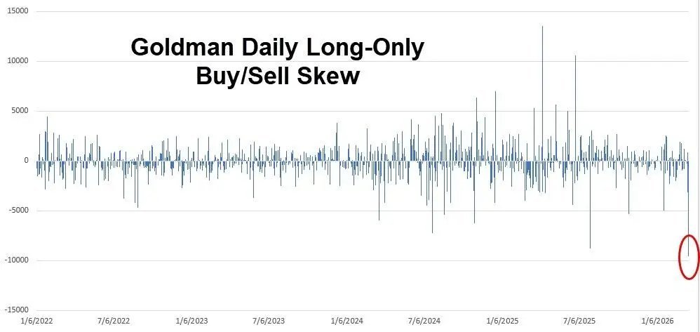 高盛交易台数据显示,3月20日纯多头基金净卖出规模达96亿美元,超越此前于2025年7月31日创下的88亿美元纪录,成为该行数据集中有史以来最大单日净卖出。高盛将其定性为"5倍标准差事件"。